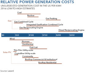 As just one example of the capital and resources that are flowing into this space, Tesla along with Panasonic and other partners will collectively invest about $5 billion in the lithium-ion battery “Gigafactory” in Nevada. The facility will contain around 15 million square feet on multiple levels, and according to Tesla CEO Elon Musk, “The Gigafactory, when it’s complete, will have the biggest footprint of any building in the world.” Daimler AG, Dyson, LG Chem, Fortum Oyj, and other companies are also making significant investments in battery technology, which are all serving to advance the core technologies that will support renewable power generation.